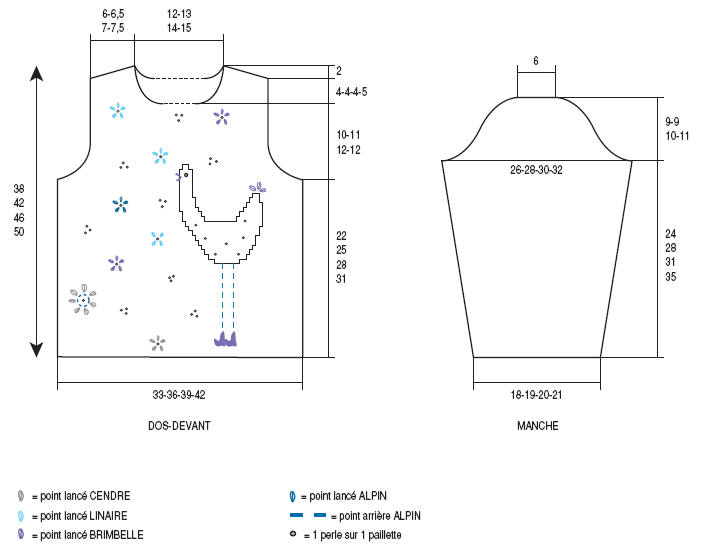 Coudre des paillettes sur le devant avec une perle sur ch. paillette (voir croquis).
