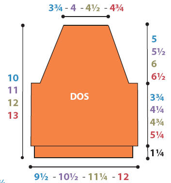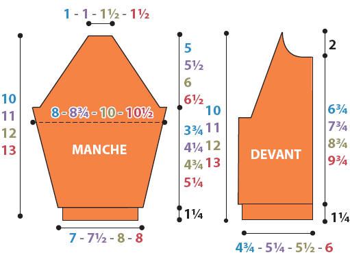 Les numéros pour chaque taille sont donnés dans la même couleur dans tout le patron.