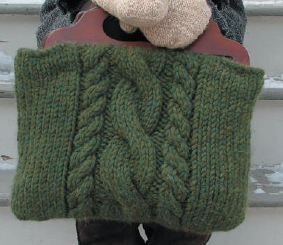 Rnd 35, dec: Join yarn at BOR, *k7 hiding wrap, dec 3 sts across Cable Patt, k7 hiding wrap; rep from * 1 time 66 sts rem.