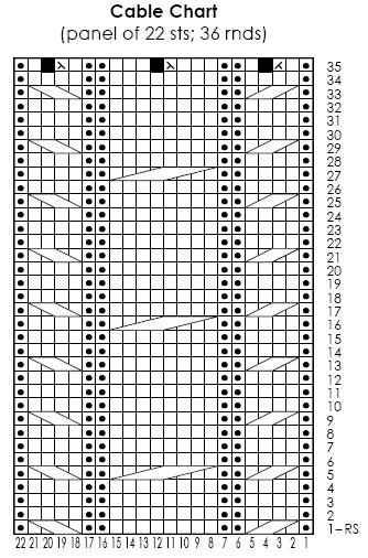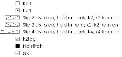 Cable Pattern: (panel of 22 sts decd to 19 sts) (also, see chart)