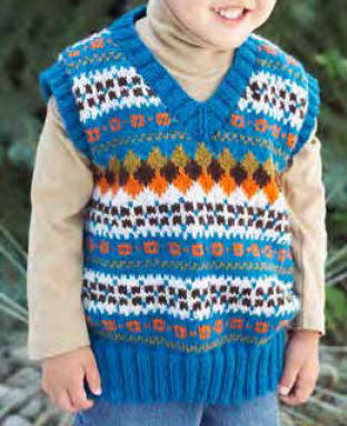 24 sts and 26 rows = 4" [10 cm] in Fair Isle Pat with larger needles.