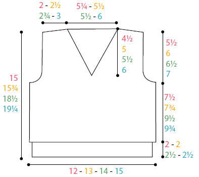 Sizes 2 and 4 only: Next row: Pat to last 2 sts. P2tog. 25 (28) sts.