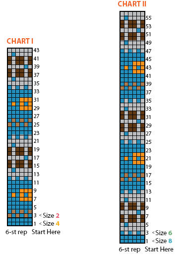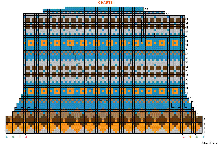 Keeping cont of chart, rejoin yarn and proceed back and forth in rows across needle on last 66 (72-78-84) sts.