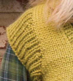 (WS) Begin 1 x 1 Rib; work 3 rows, ending after a WS row. BO all sts. Buttonband: With circular needle and RS facing, pick-up and knit 37 sts evenly along left front edge including side of neckband.