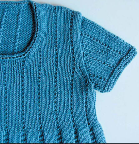 1. This dress is worked from the top down and begins with short rows to shape the shoulders.