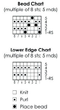 Change to Bead Patt (optional) or Lower Edge Patt; work 5 rnds even.
