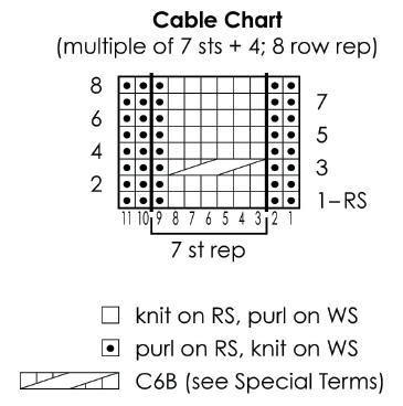 Cable Pattern: (multiple of 7 sts + 4) (also, see chart)