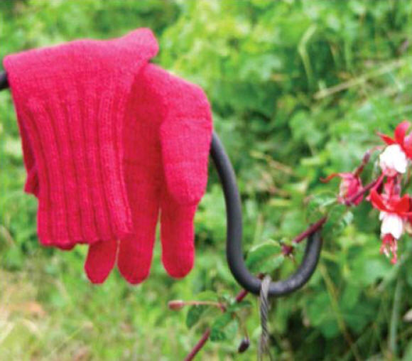 Follow the instructions for the Cuff and Body, trying on the knitting as you get to each section to make sure it will fi t. For the fingers, I like to thread the stitches onto small (about 6") lengths of yarn, one for each finger, then I tie each one into a circle and try the glove on to see if the fingers will be the right size.