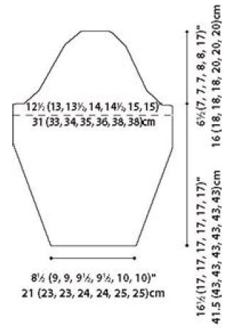 Every 13th (12th, 12th, 11th, 10th, 9th, 9th) row inc 1 st ea side 7 (8, 8, 9, 10, 11, 11) times - 54 (56, 58, 60, 64, 66, 68) sts and 91 (96, 96, 99, 100, 99, 99) rows.