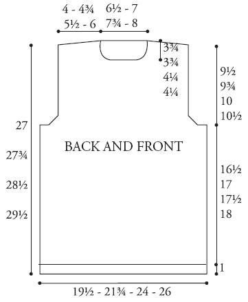 Cont even until armhole measures 9½ (9¾-10-10½) ins [24 (25-25.5-26.5) cm] ending with RS facing for next row.