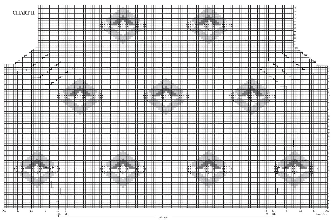 Work Chart II, reading knit rows from right to left and purl rows from left to right until row 72 (76-80-84) of chart is complete.