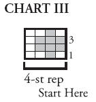 Work rows 1 to 4 of Chart III noting the 4 st rep will be worked 25 (27-29- 30) times.