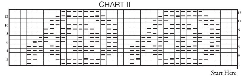Next row: Purl. Work Chart II in stocking st to end of chart, reading knit rows from right to left and purl rows from left to right.