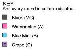 Change to MC; knit 2 (4, 6) rounds, pm every 18 (20, 22) sts on last round.
