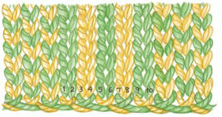 For example, let’s look at a five-stitch steek. Each leg of each stitch has been numbered for easy reference.