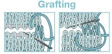 Graft 2 sets of 10 (10-12) sts tog for toe (see Diagram).