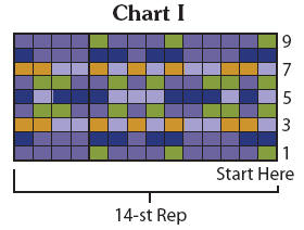 Work Chart I, noting 14 st rep will be worked 8 times.