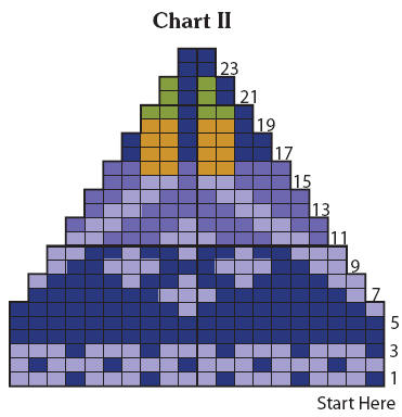 8th rnd: *With B, K2. With C, K4. (With B, K1. With C, K2) twice. With B, K1. With C, K4. With B, K1. Rep from * around. Slip rnd marker back 1 st at end of last rnd.