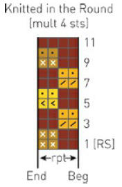 Border Pattern Knitted in the Round (multiple of 4 stitches) See the chart.