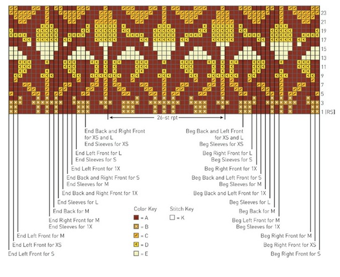 • The sweater is designed so that the patterns on the Body and Sleeves will line up at the armhole.
