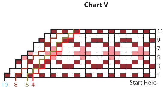 Work Chart VIII to end of chart, noting 5 st rep will be worked 12 (13) times.