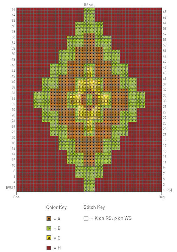 Panel 3 (52 stitches, 66 rows) See the chart.