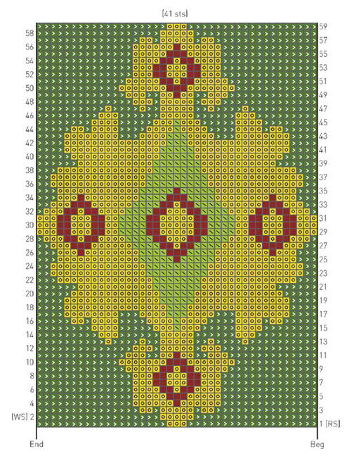 work the 56- row Panel 1 chart across the middle 19 stitches 3 times,
