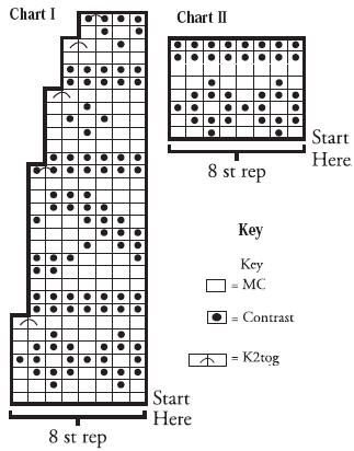 Next rnd: With MC, knit dec 0 (0-2-4) sts evenly around. 66 (72-76-80) sts.