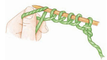 Wrap the yarn from front to back around your left thumb, then insert the right-hand needle from front to back to catch the strand.