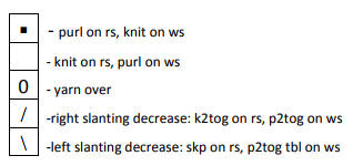 p – purl | yo – yarn over | k2tog – knit 2sts together (right slanting decrease) |