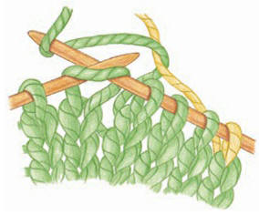 If the color work requires that you carry a yarn for a distance of 1"/[2.5cm] or more, you should catch, or twist, the unused strand with the working yarn.