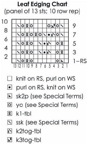 Leaf Edging: (panel of 13 sts) (also, see chart)