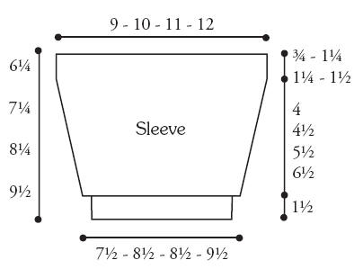 Sleeves With MC and smaller needles cast on 34 (38-38-42) sts.