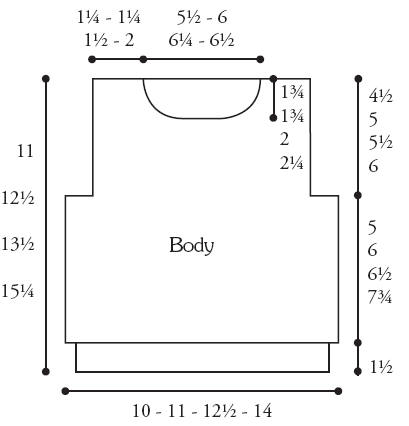 Cont even in pat until armhole measures 2¾ (3¼-3½-3¾) ins [7 (8.5-9-9.5) cm] ending with RS facing for next row.