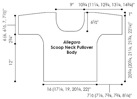 and at same time, when pc meas 6 (6, 61⁄2, 7, 71⁄2)" from final sleeve CO, end after a WS row.