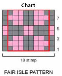 Cont in St st, change to larger needles and Fair Isle Pattern from Chart; work even for 8 rnds.