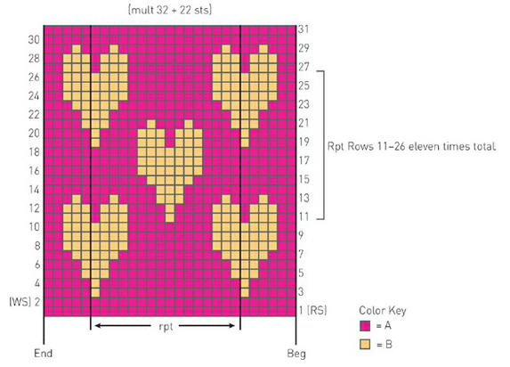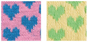 Begin working the Heart Pattern chart in double knitting, and work Rows 1–26 once.