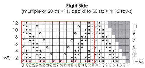 (RS): (Sl1-k2tog-psso) twice – 2 sts.