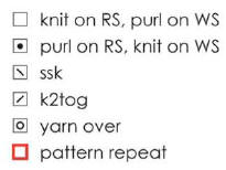 k2tog: Knit 2 sts together (1 st decreased) | pm: place marker | yo: Yarn over (1 st increased) |