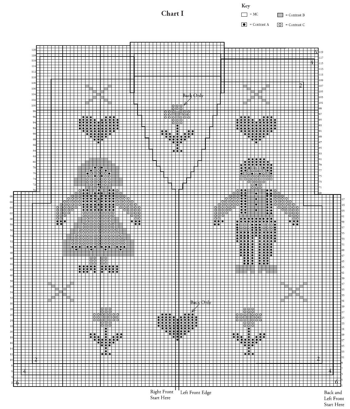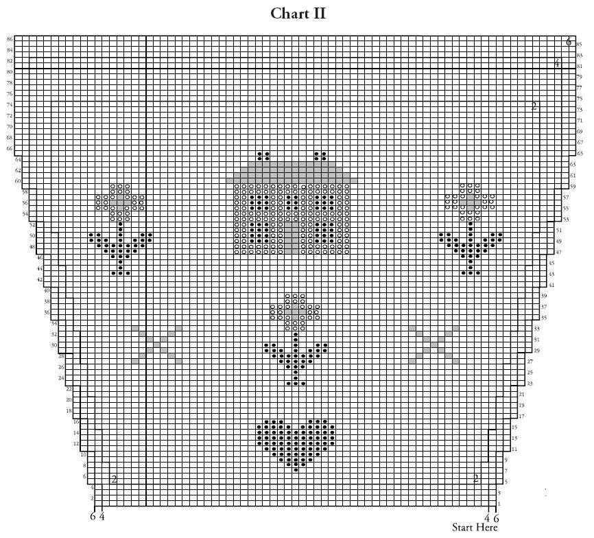 Small areas of color in charts may be worked using duplicate stitch if desired.