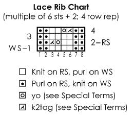 Lace Rib: (multiple of 6 sts + 2) (also, see chart)