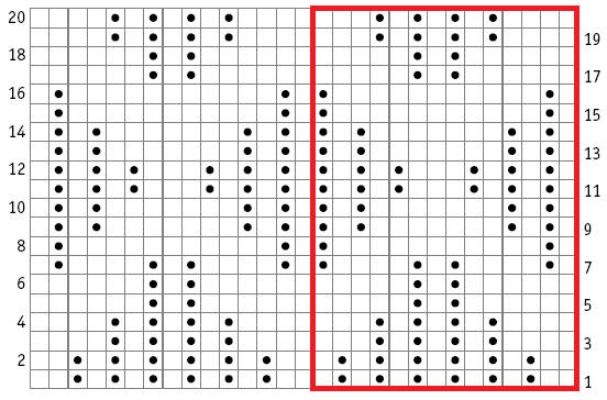 R19 | *K4, [p1, k1] 4 times, k2* | rep from * to last st, k1 |