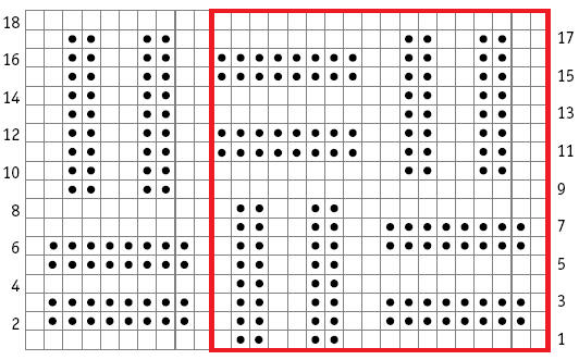R17 | *[K2, p2] twice, k10* | rep from *, ending [k2, p2] twice, k2 |