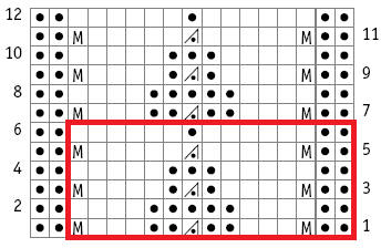 R5 | P2, *m1, k5, p3tog, k5, m1, p2* | rep from * to end |