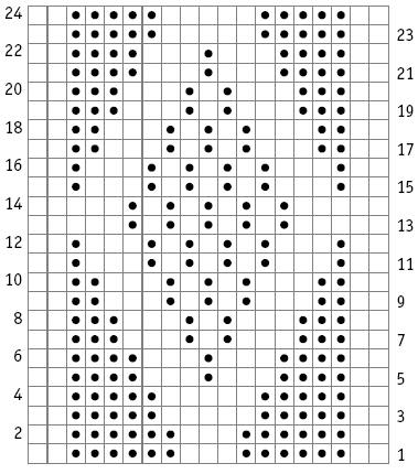 Here’s a knit and purl reproduction of the classic diamond cable pattern.