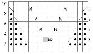 R9 | *K2tog, k3, m, k6, m, k3, ssk* | rep from * to end |