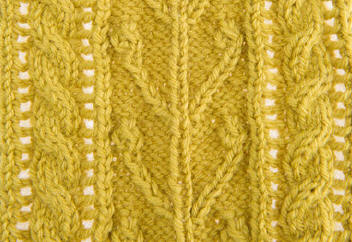 3-st RPC | Sl next st to cn and hold at back, k2 from left needle, p1 from cn. | Gl la prochaine maille sur l'aig à torsade à l'arrière de l'ouvrage, 2 end de l'aig gauche, 1 env de l'aig à torsade. |