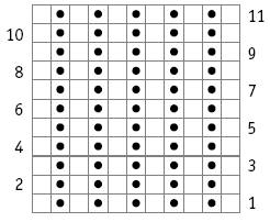 This is the most basic rib. A reversible pattern, you often see it on cuffs, hems, and necklines.