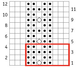 R4 | P3, *k2, p1, k2, p3* | rep from * to end |