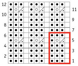 m. env. sur l'end.* m. end. sur l'env. | Purl RS, Knit WS |